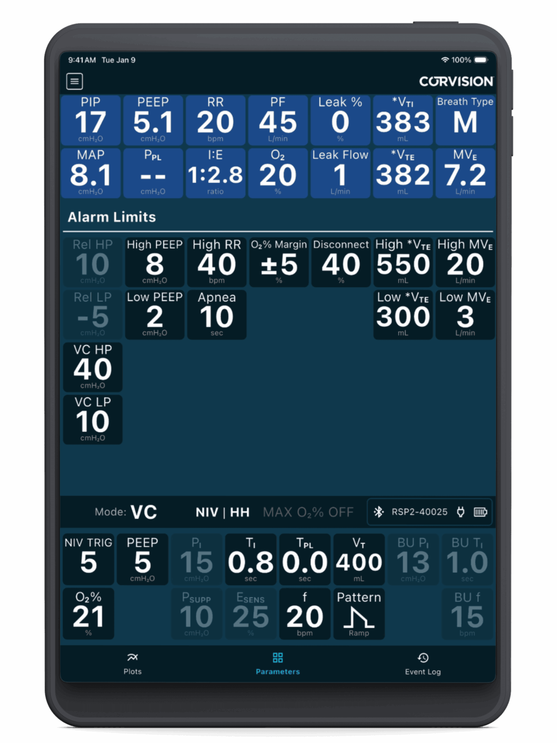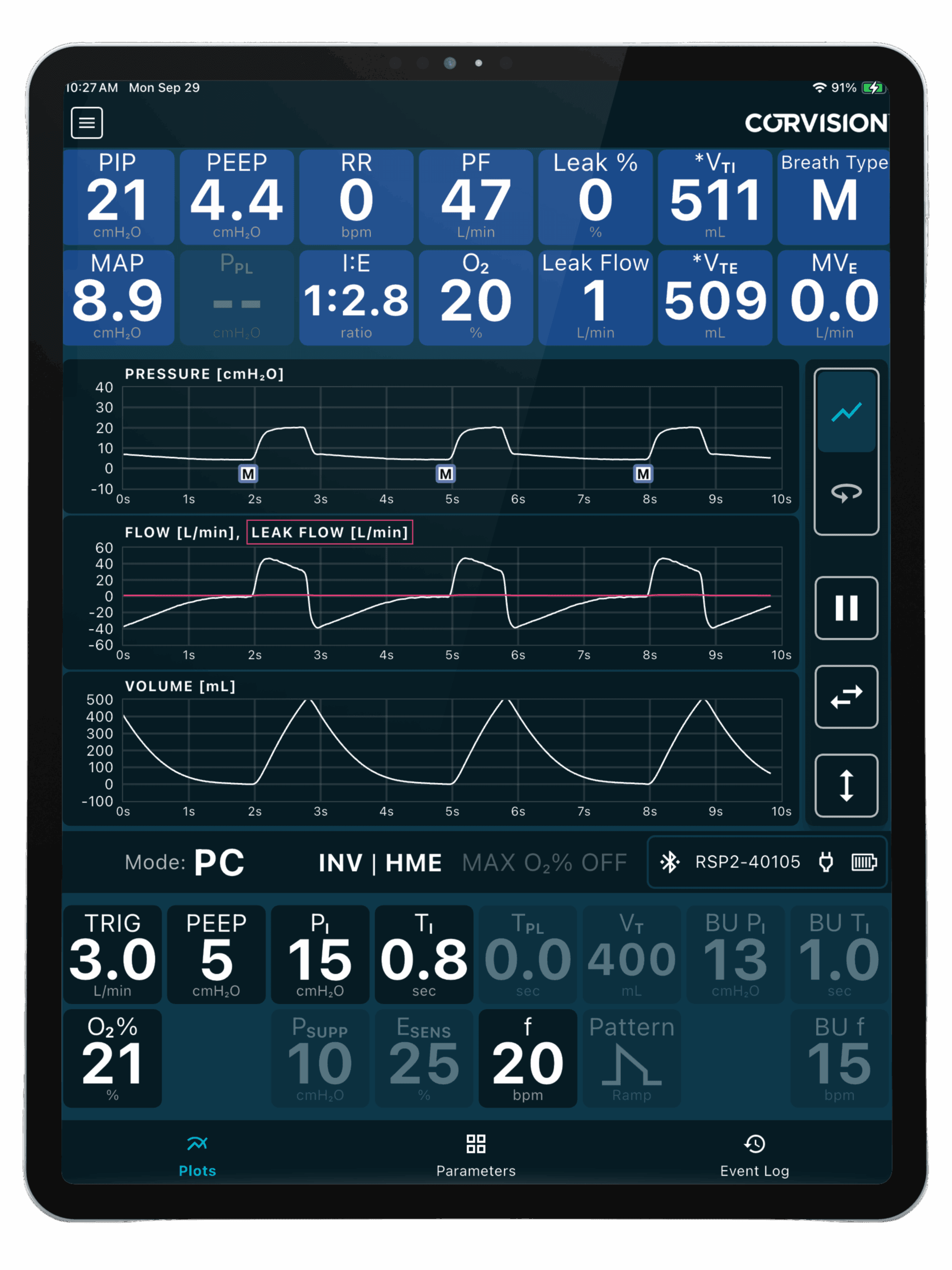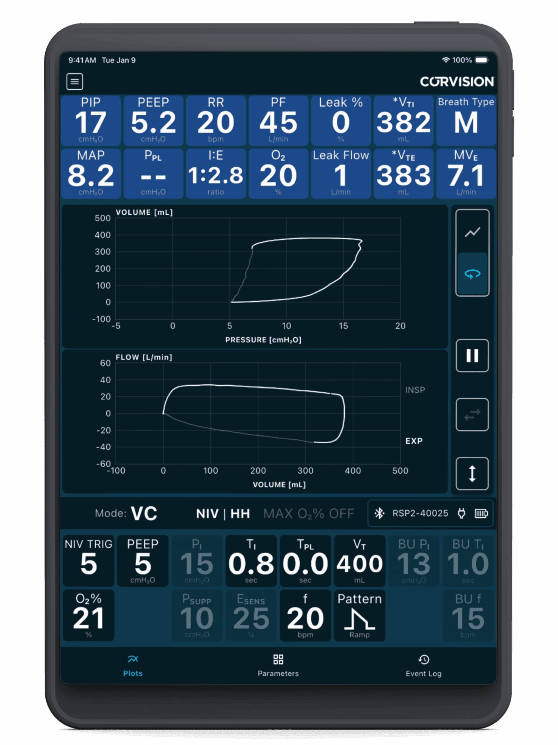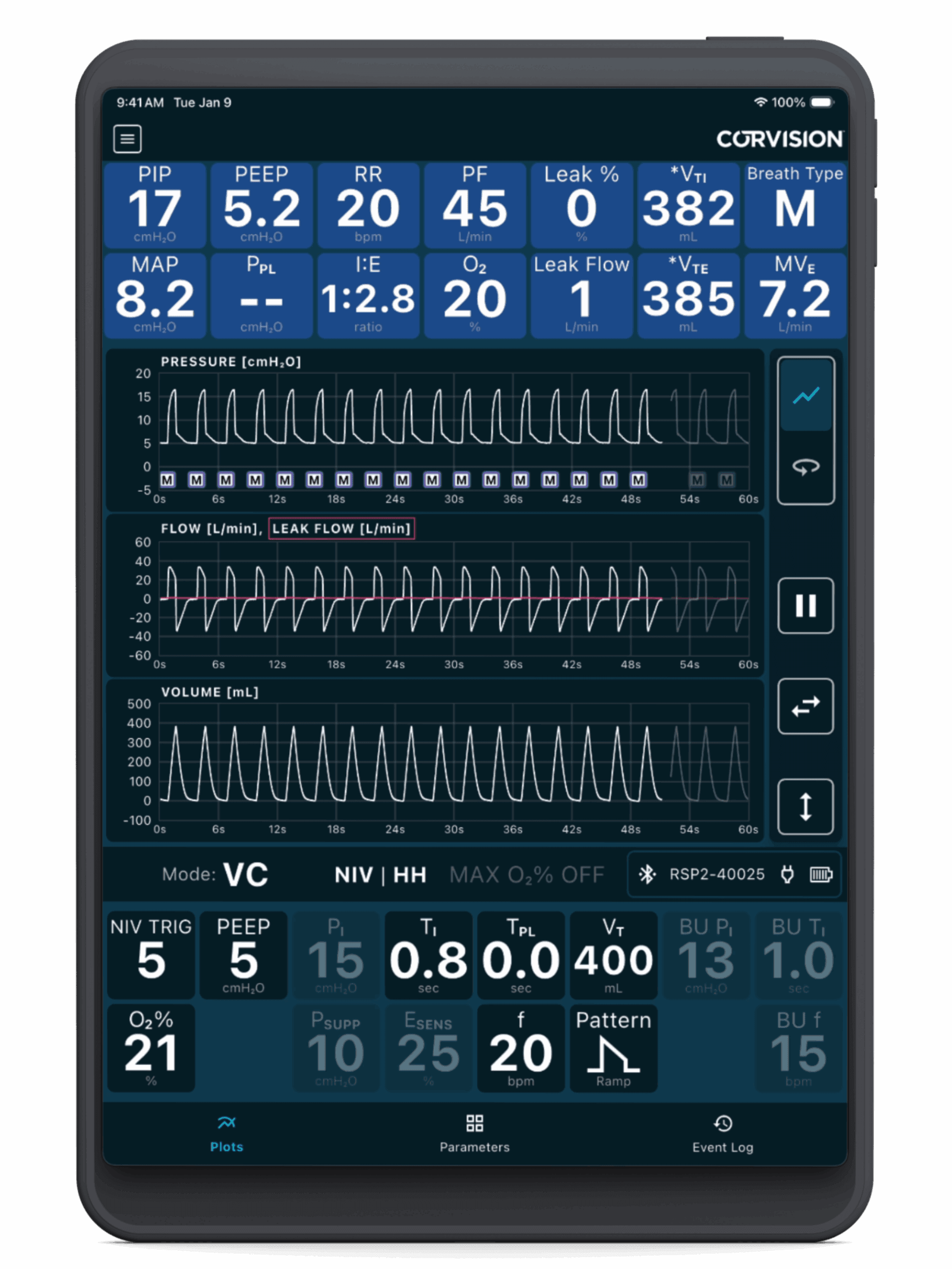 CorVision™ connects wirelessly to the RESPOND® ventilator via Bluetooth, enabling seamless real-time data transfer. This eliminates the need for manual setup and allows clinicians to begin monitoring instantly.